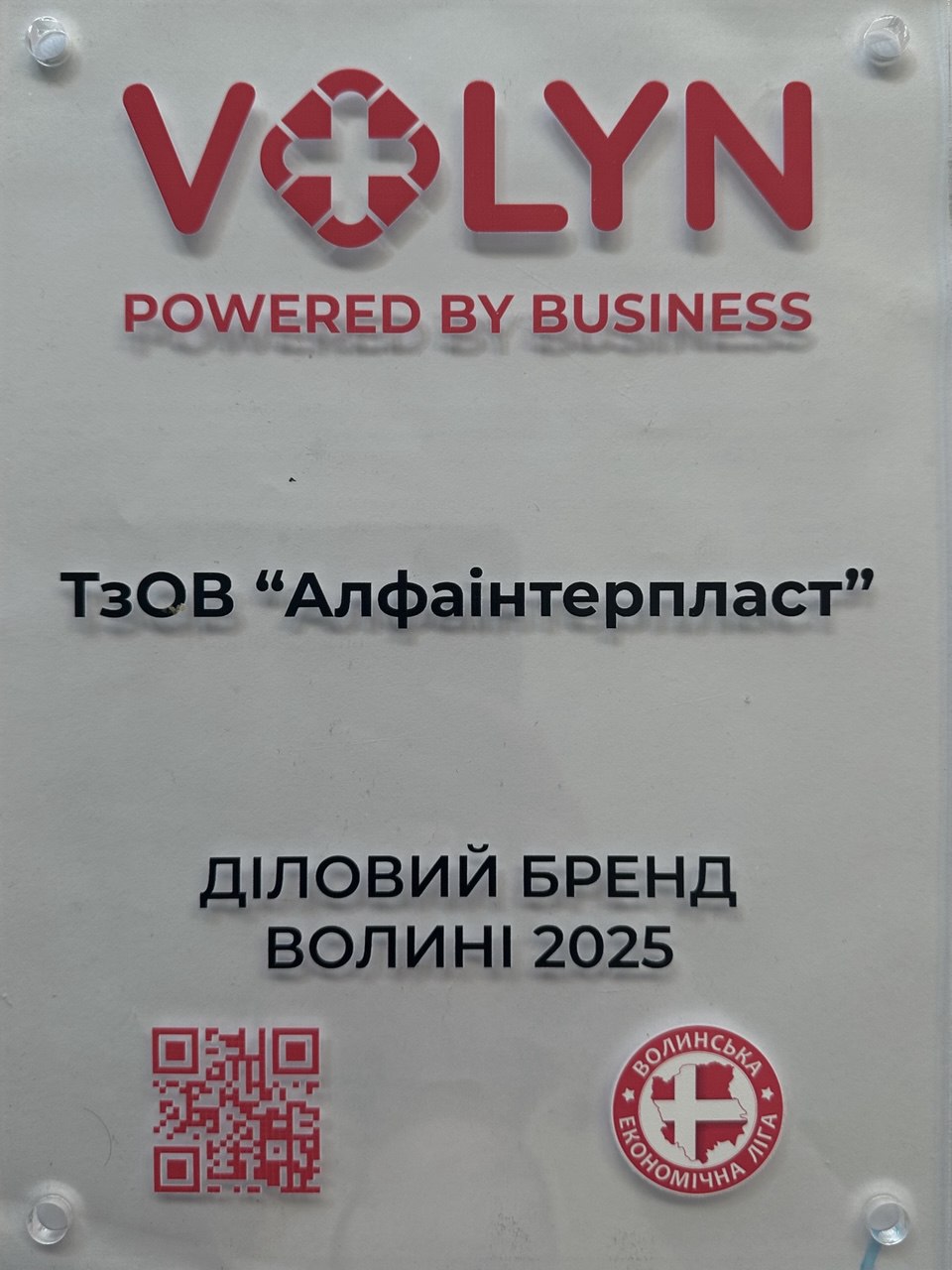 Колектив компанії «Алфаінтерпласт» розпочинає новий етап своєї історії з вагомого досягнення. Підприємство офіційно отримало статус «Діловий бренд Волині 2025», що підтверджено відповідною відзнакою від Волинської економічної ліги.
